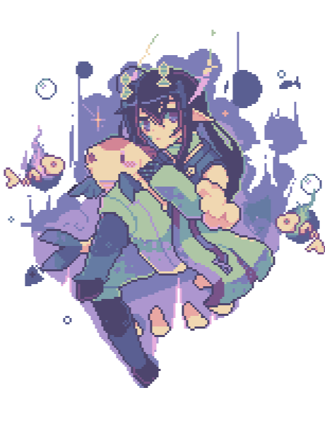 I've been a self-taught freelance pixel animator since 2019.Since then I've brought countless people's characters to life in one form or another. Some of which vary from music videos, album art, indie games, and of course vtuber asset creation.My art has featured as 'daily deviations' several times on the website 'deviantART' as well.My interest in pixel art started sometime in 2011 with a mix of Pokemon Black and White and editing sprites from various flash games. I always dreamed about making games myself, but I am putting them to the side for now to focus on art.Though seeing characters that I have designed come to life is an almost indescribable feeling.I hope that I can work with you to bring your visions to life.